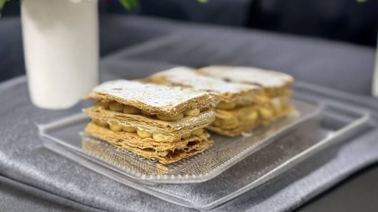 Si la vida es demasiado corta para compartir el postre, aquí entro yo: el Pastel Milhojas individual, hecho con hojaldre de margarina y actitud de “todo para mí”.